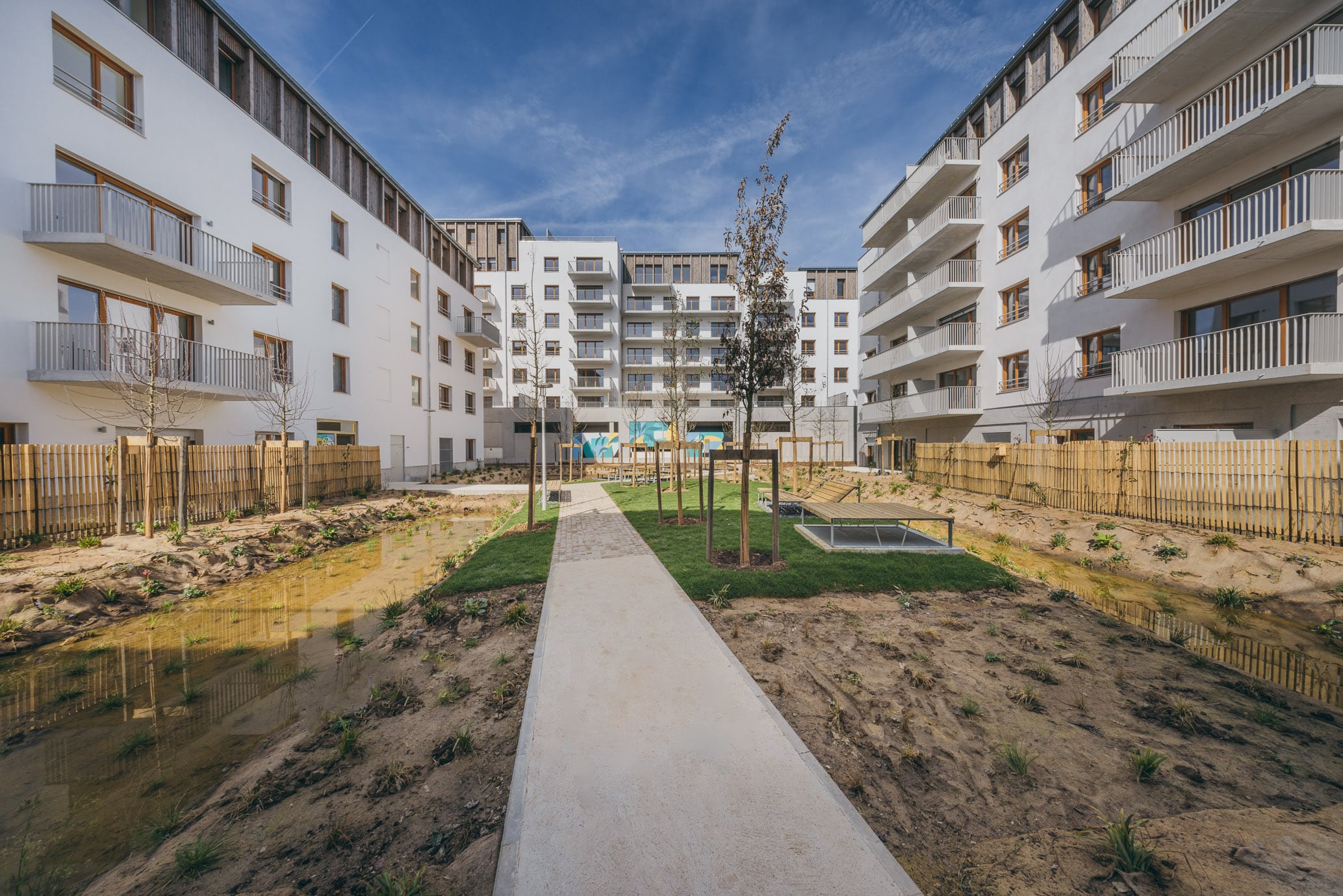 Lauréat en 2019 à la suite d’une consultation menée par l’aménageur EpaMarne, pour la construction de 99 logements, ce projet a su se démarquer par l’attention particulière portée aux usages et son approche environnementale, dépassant les exigences réglementaires.