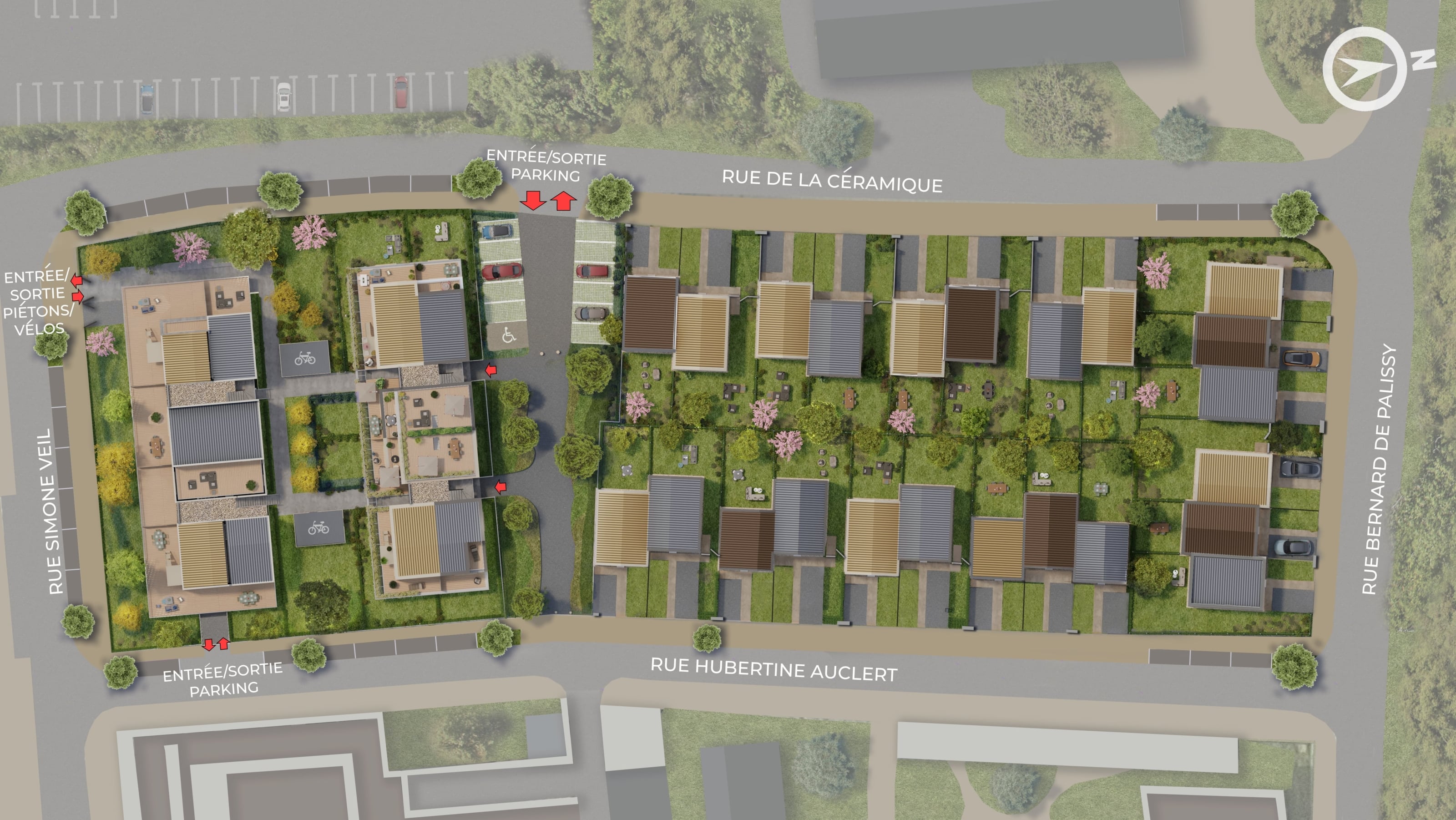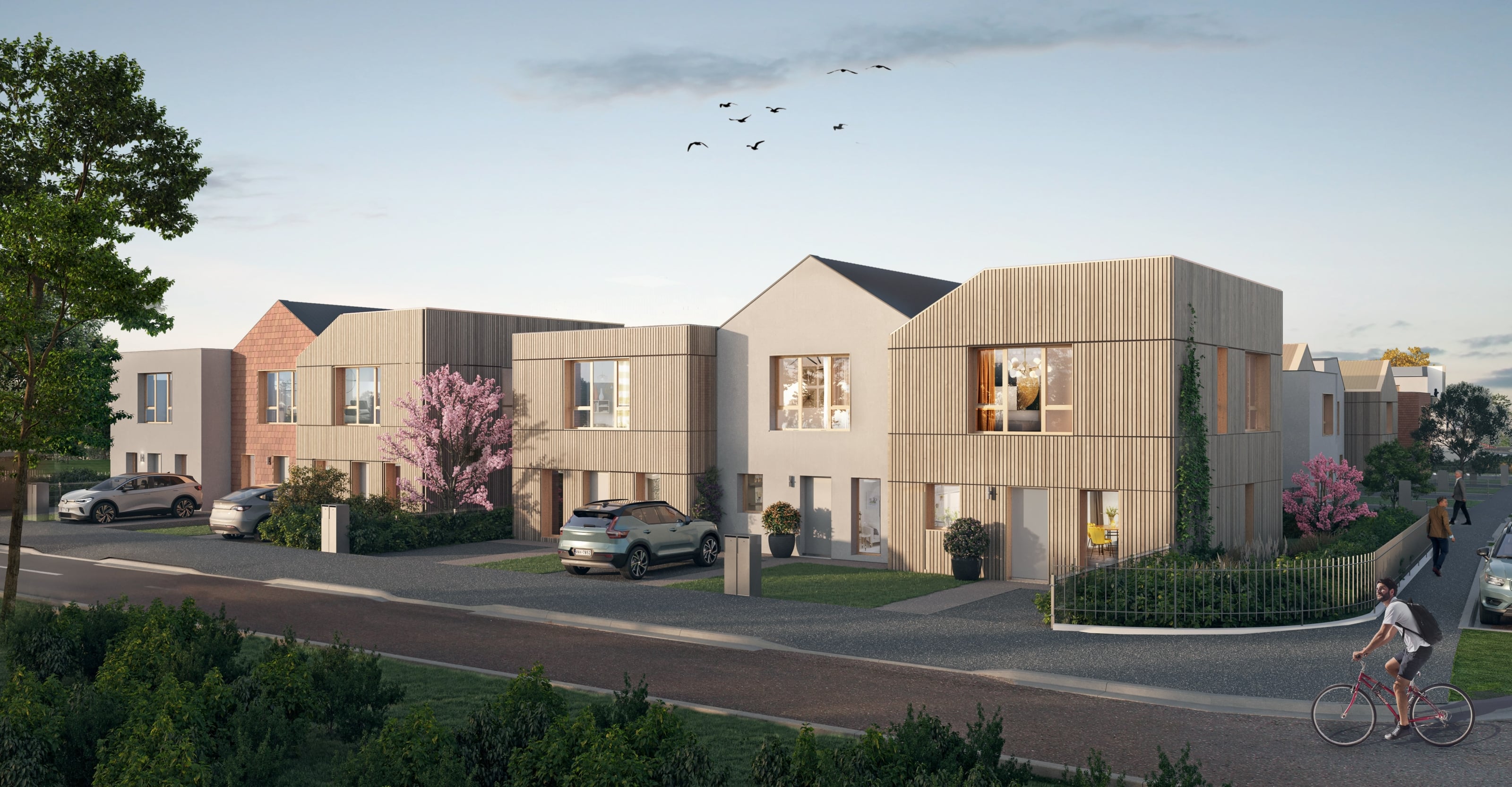 Les maisons individuelles offrent un jardin privatif, un ensoleillement optimal et des vues dégagées sur les espaces paysagers. Les appartements indépendants, inspirés des codes du pavillon, disposent de balcons, terrasses ou jardins, favorisant une relation directe avec l’extérieur et la nature environnante.