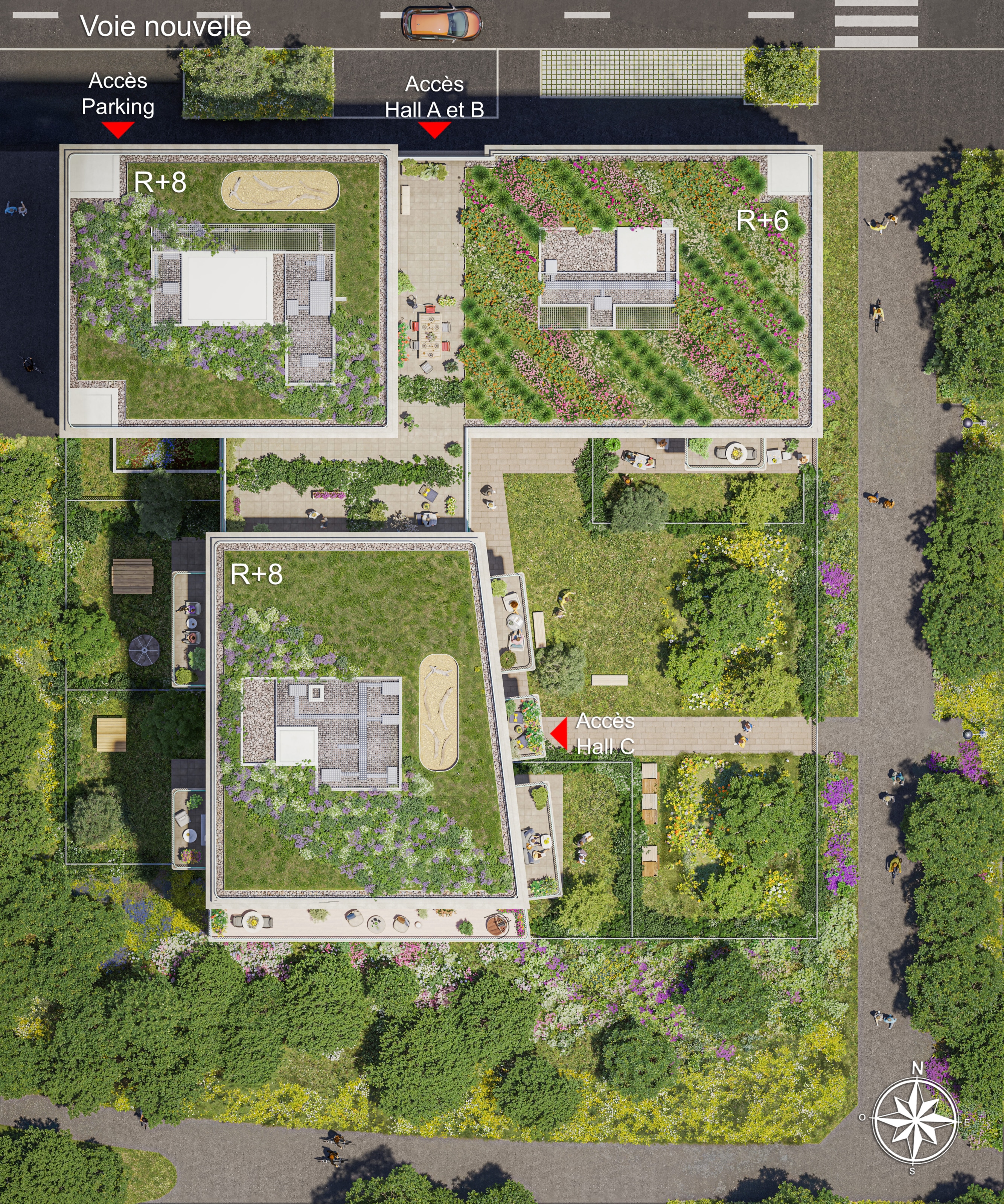 – ainsi qu’un grand jardin central et des espaces publics végétalisés, accessibles à tous.